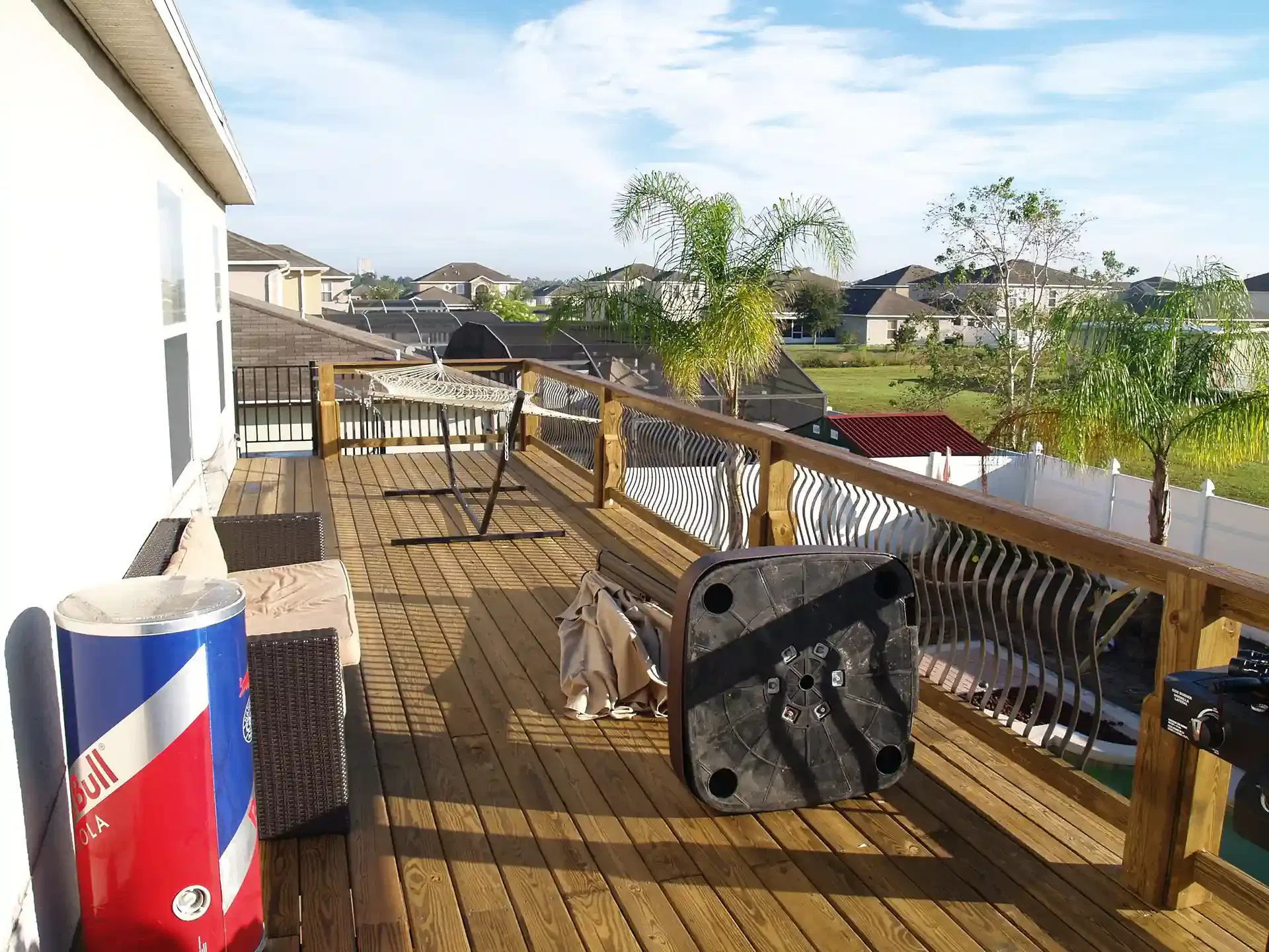 Although we’re known as Summertime DECK and DOCK, we tend to take on a fun deviation every now and again. You know, to keep things fresh. This pressured treated pine balcony was a fun challenge that combined a lot of phenomenal embellishments.